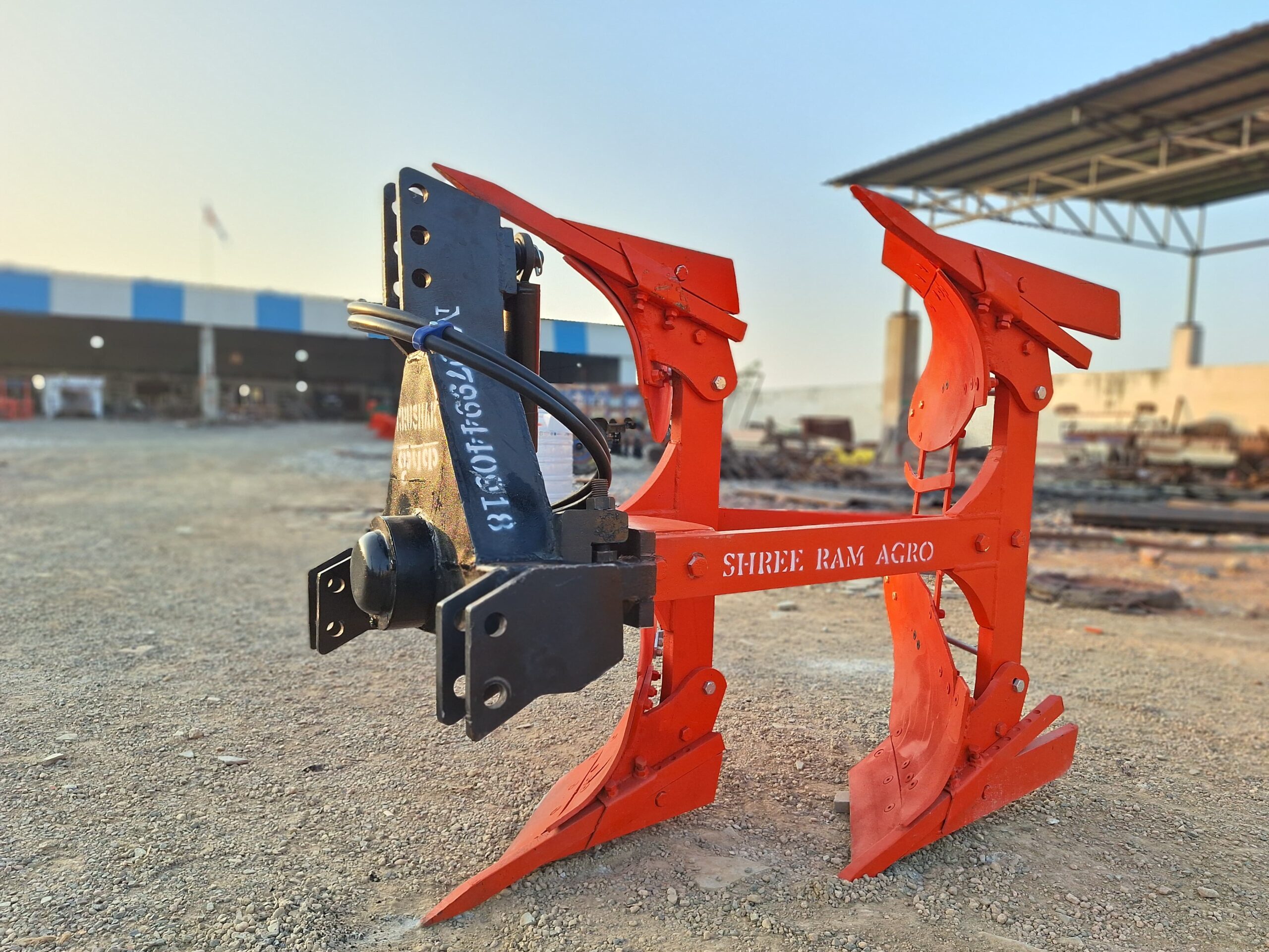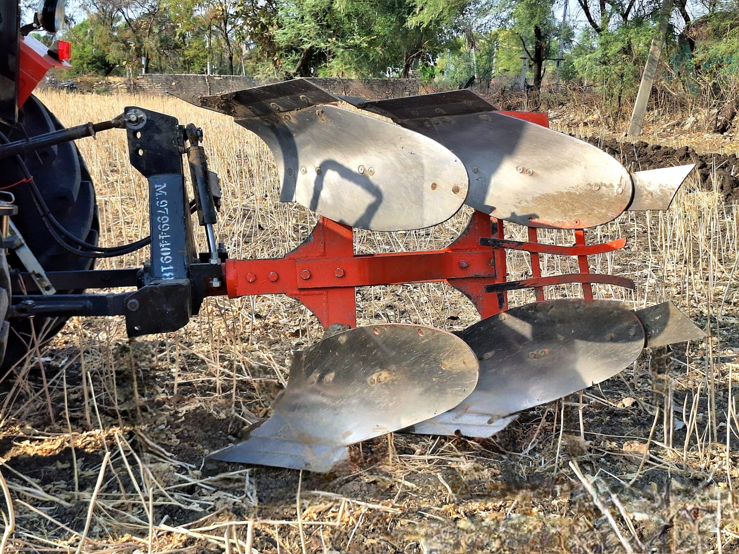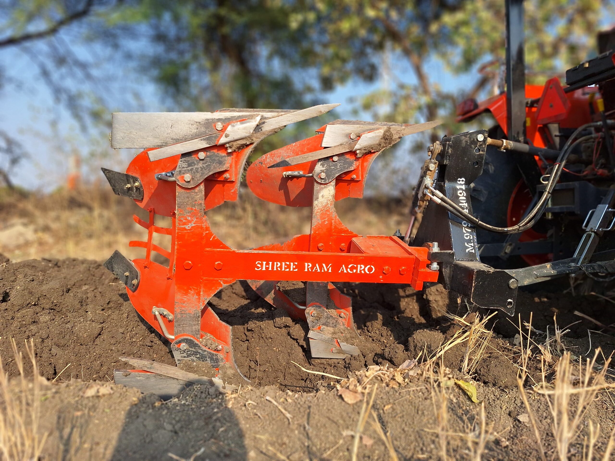 The plough is mainly used for deep tillage, which helps in breaking hard soil layers, burying weeds and crop residues, and improving soil aeration. By turning the soil deeply, it enhances moisture retention and creates a better seedbed for crops. Reversible hydraulic ploughs save time, fuel, and labor, making them suitable for large-scale farming.