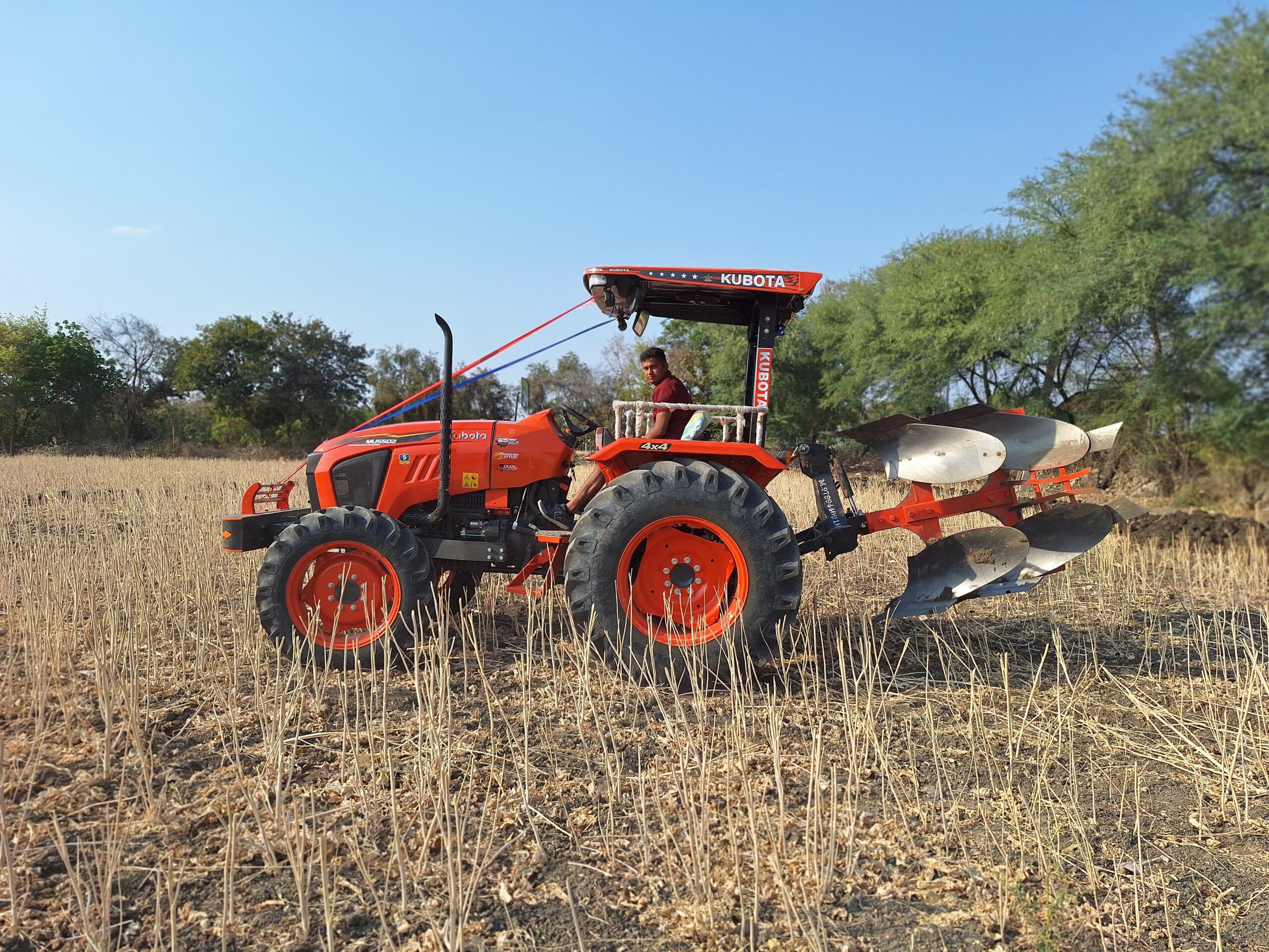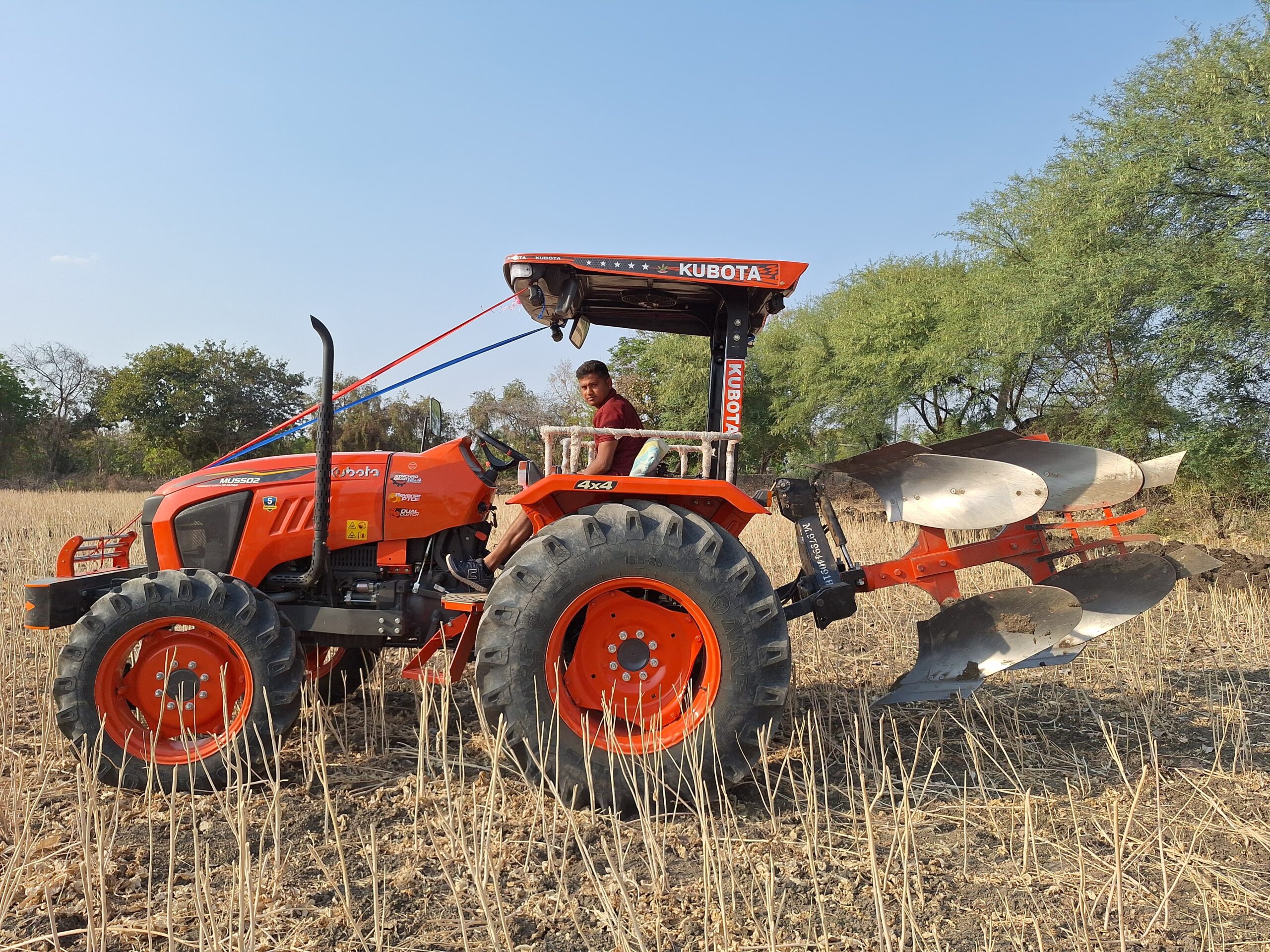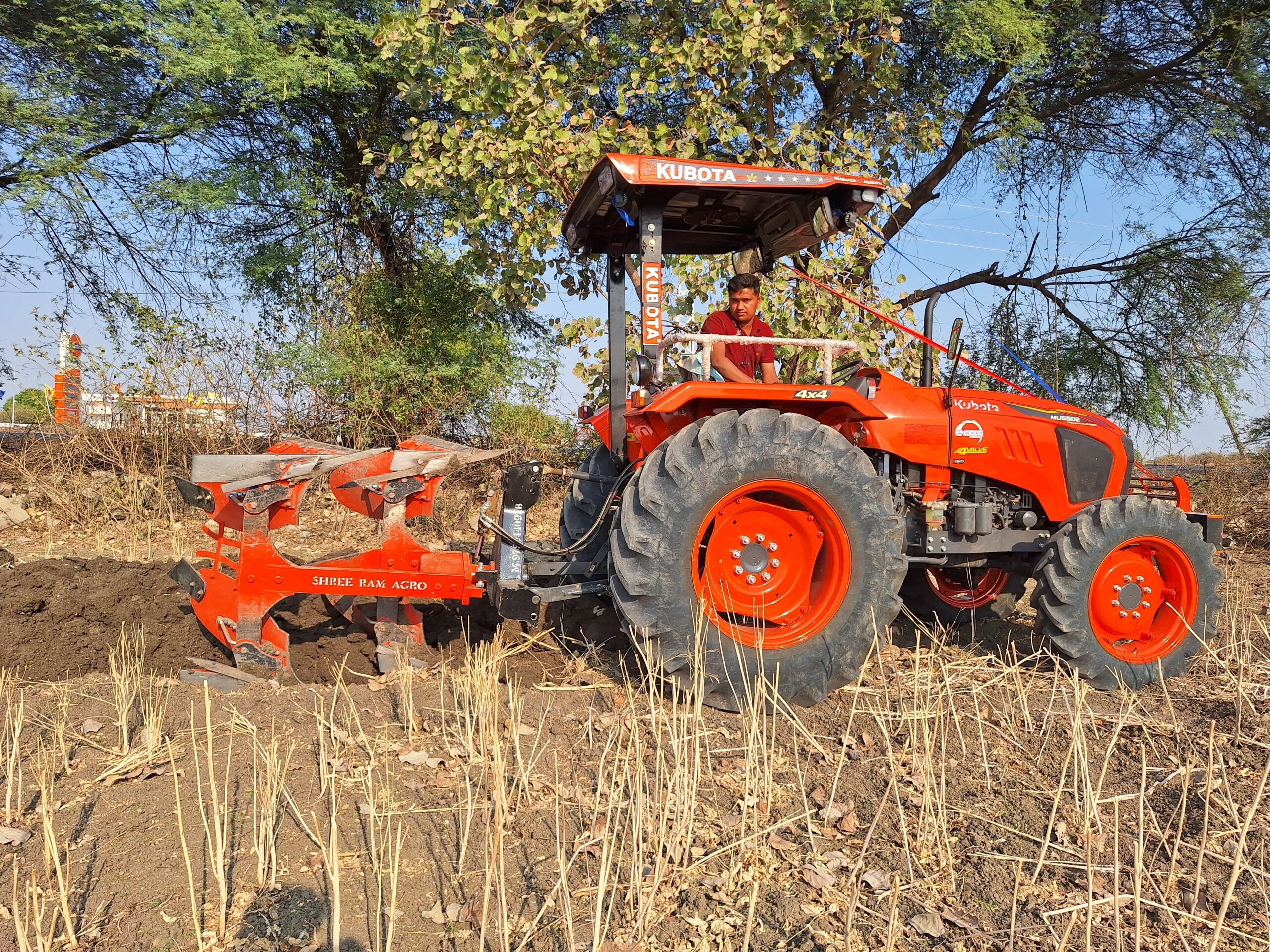 The plough is mainly used for deep tillage, which helps in breaking hard soil layers, burying weeds and crop residues, and improving soil aeration. By turning the soil deeply, it enhances moisture retention and creates a better seedbed for crops. Reversible hydraulic ploughs save time, fuel, and labor, making them suitable for large-scale farming.