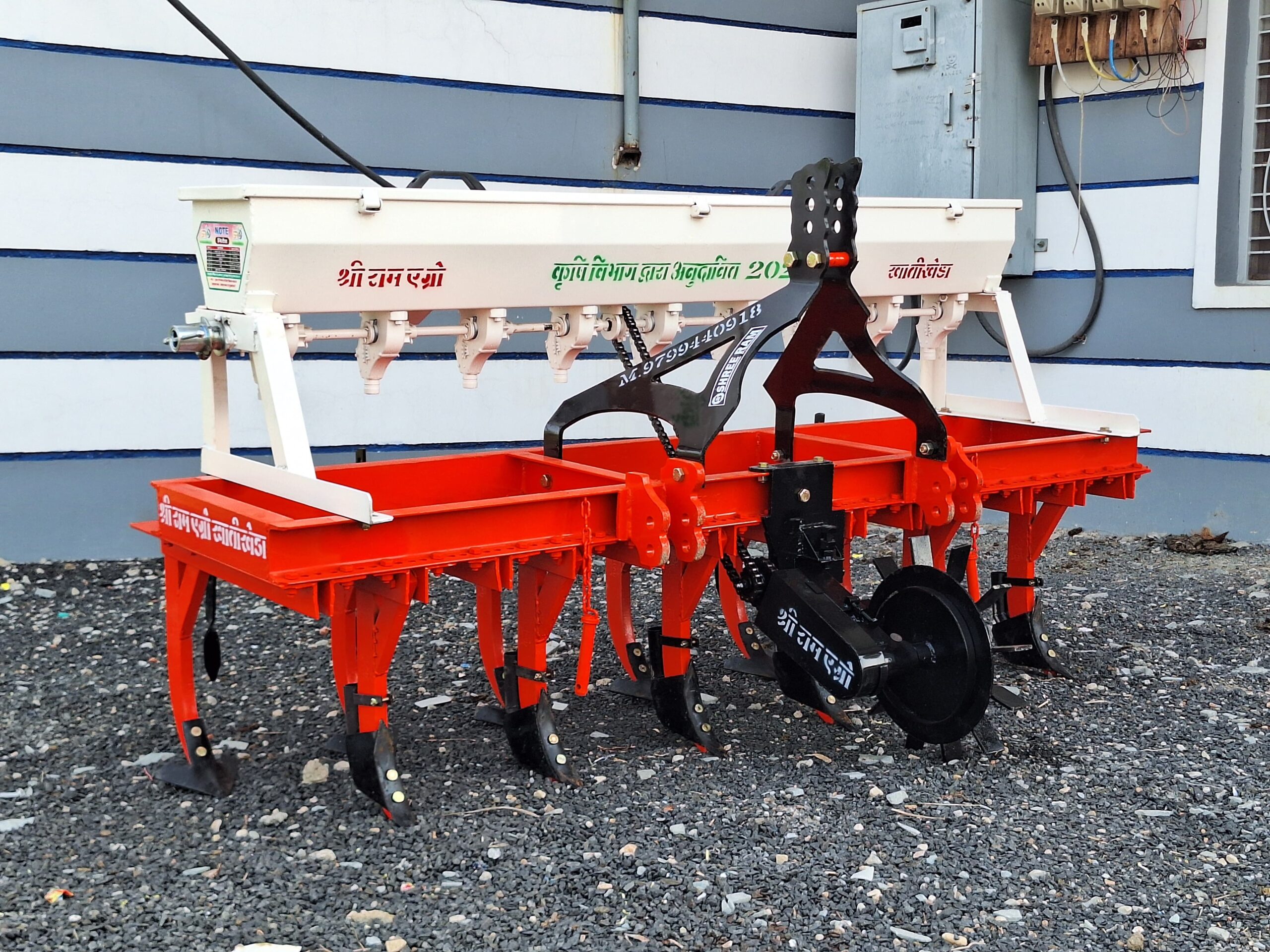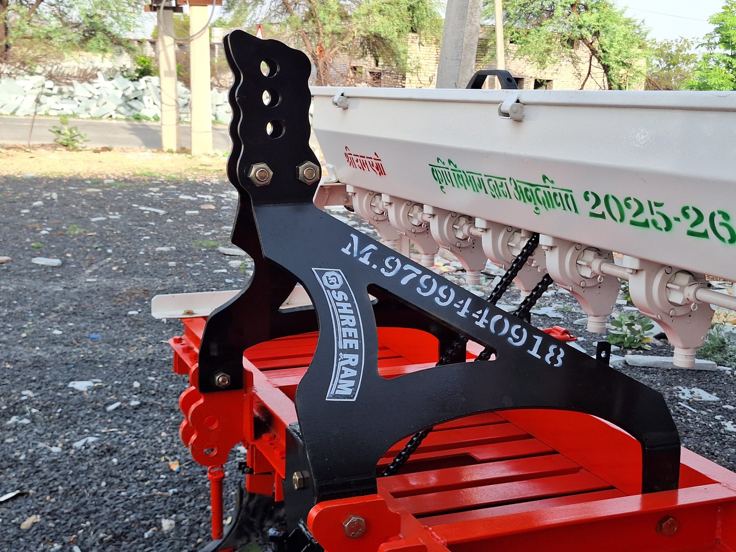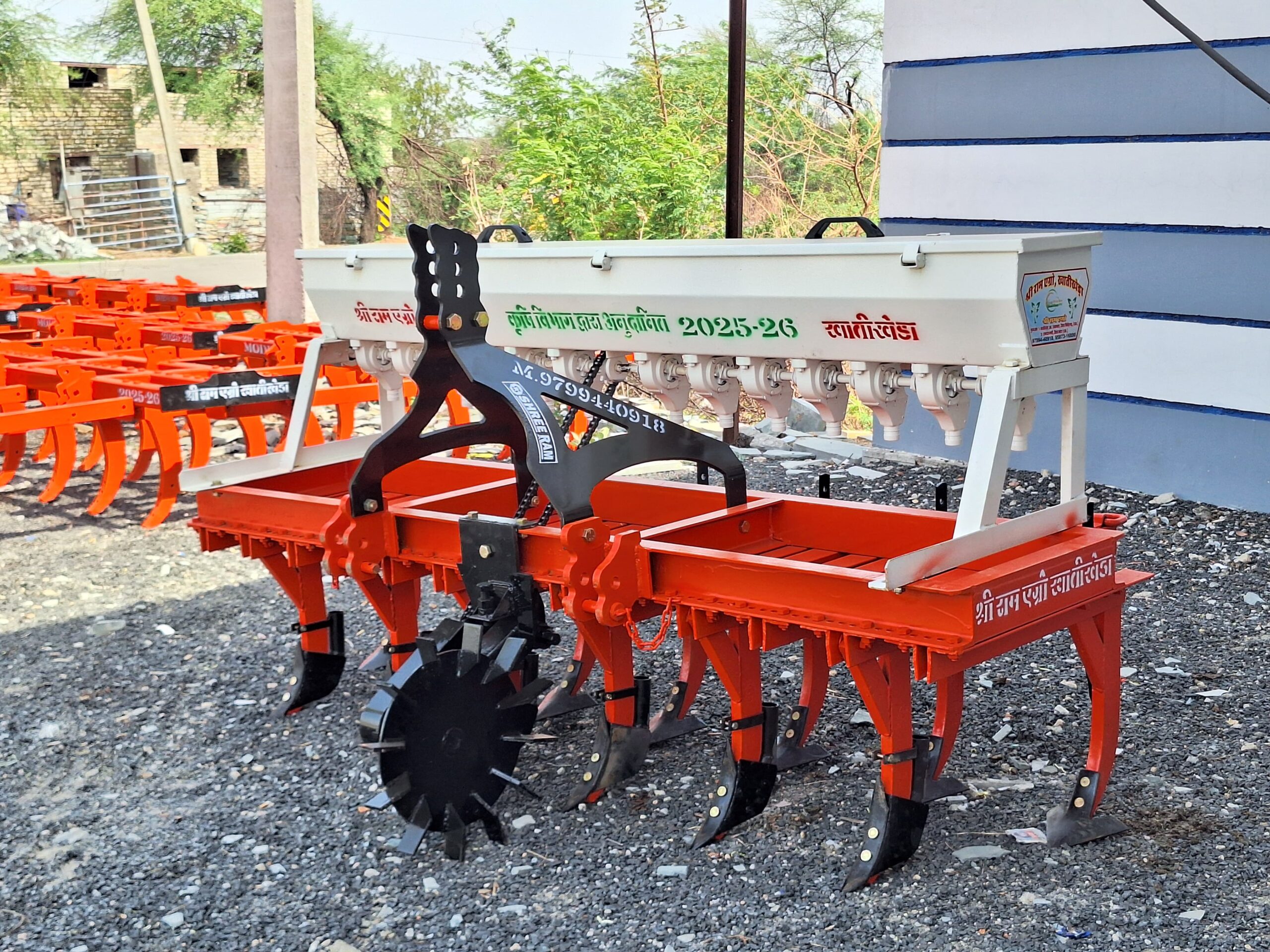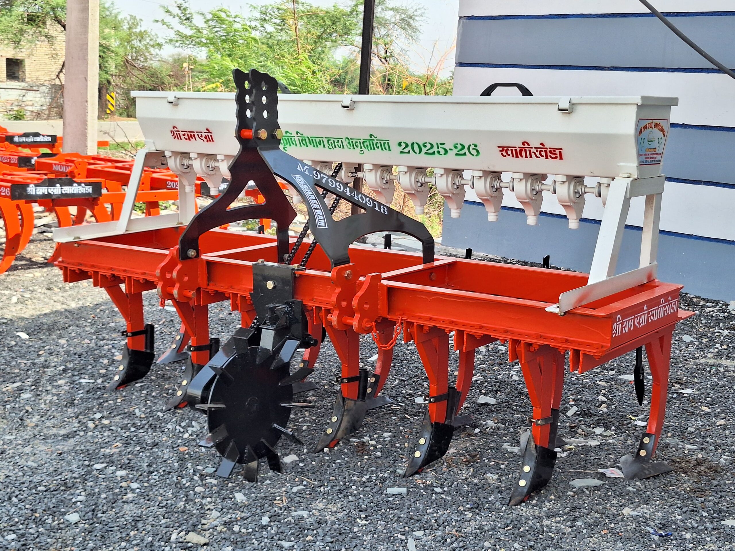 A Seed Drill is an important farm implement used for sowing seeds in rows at the correct depth and distance. It ensures uniform seed placement, which helps in proper germination and healthy crop growth. By covering the seeds with soil after sowing, it protects them from birds, wind, and moisture loss.