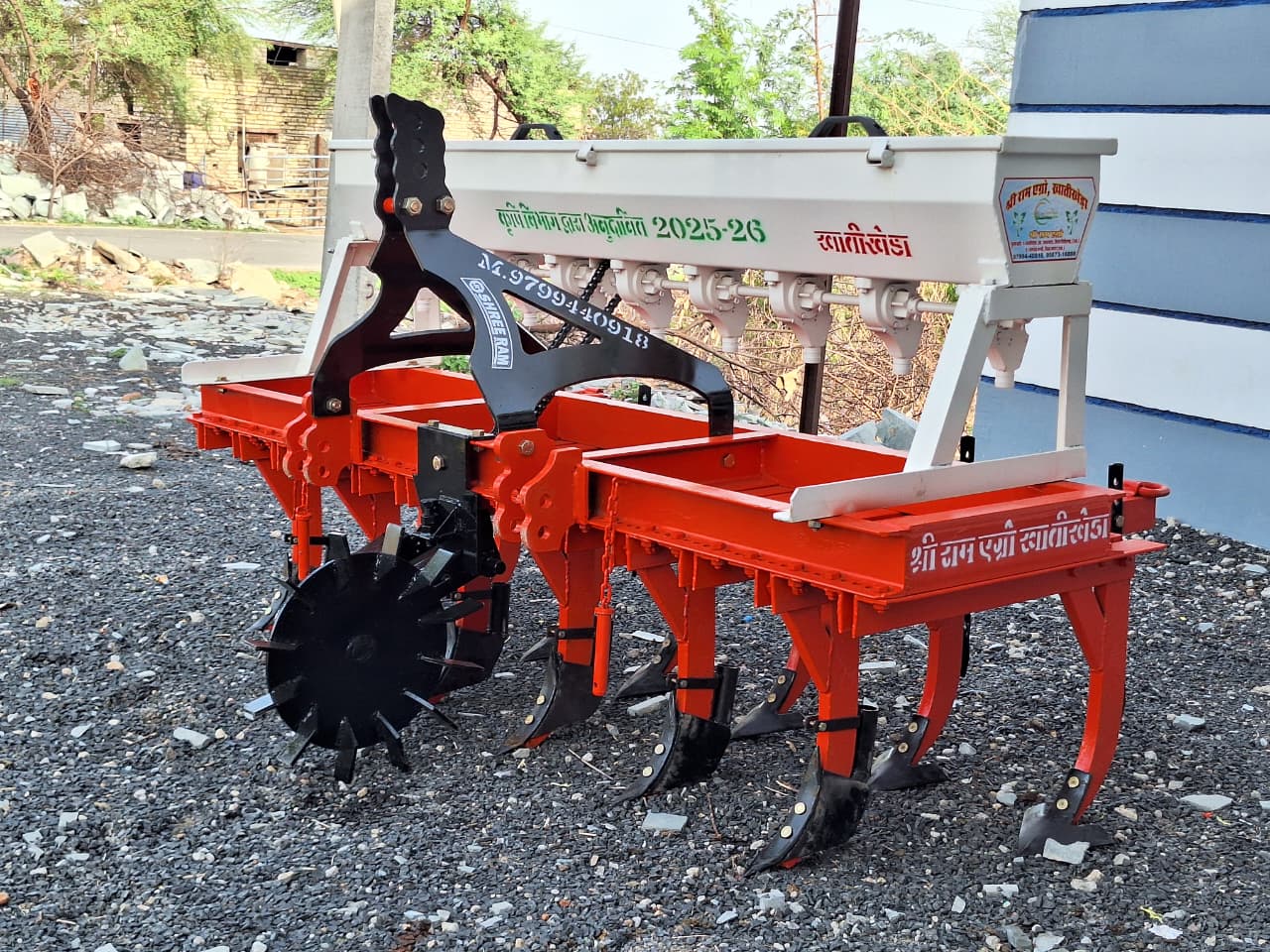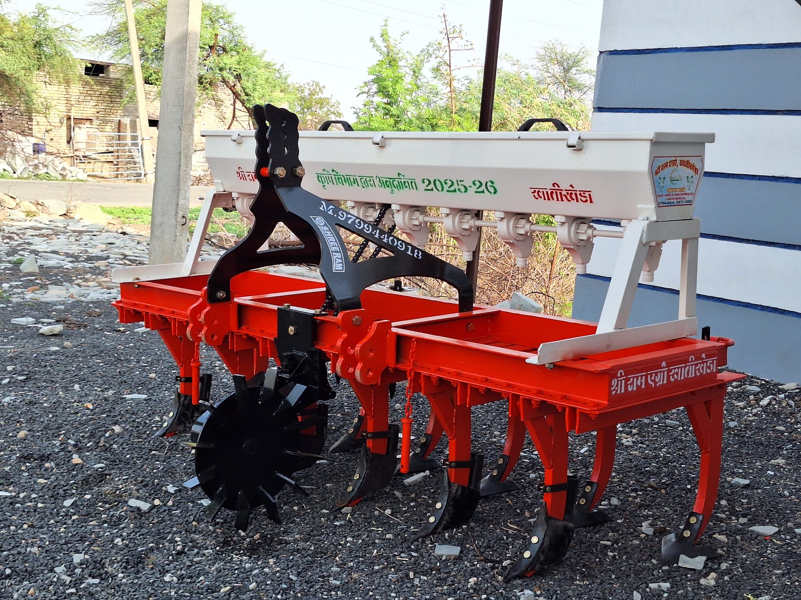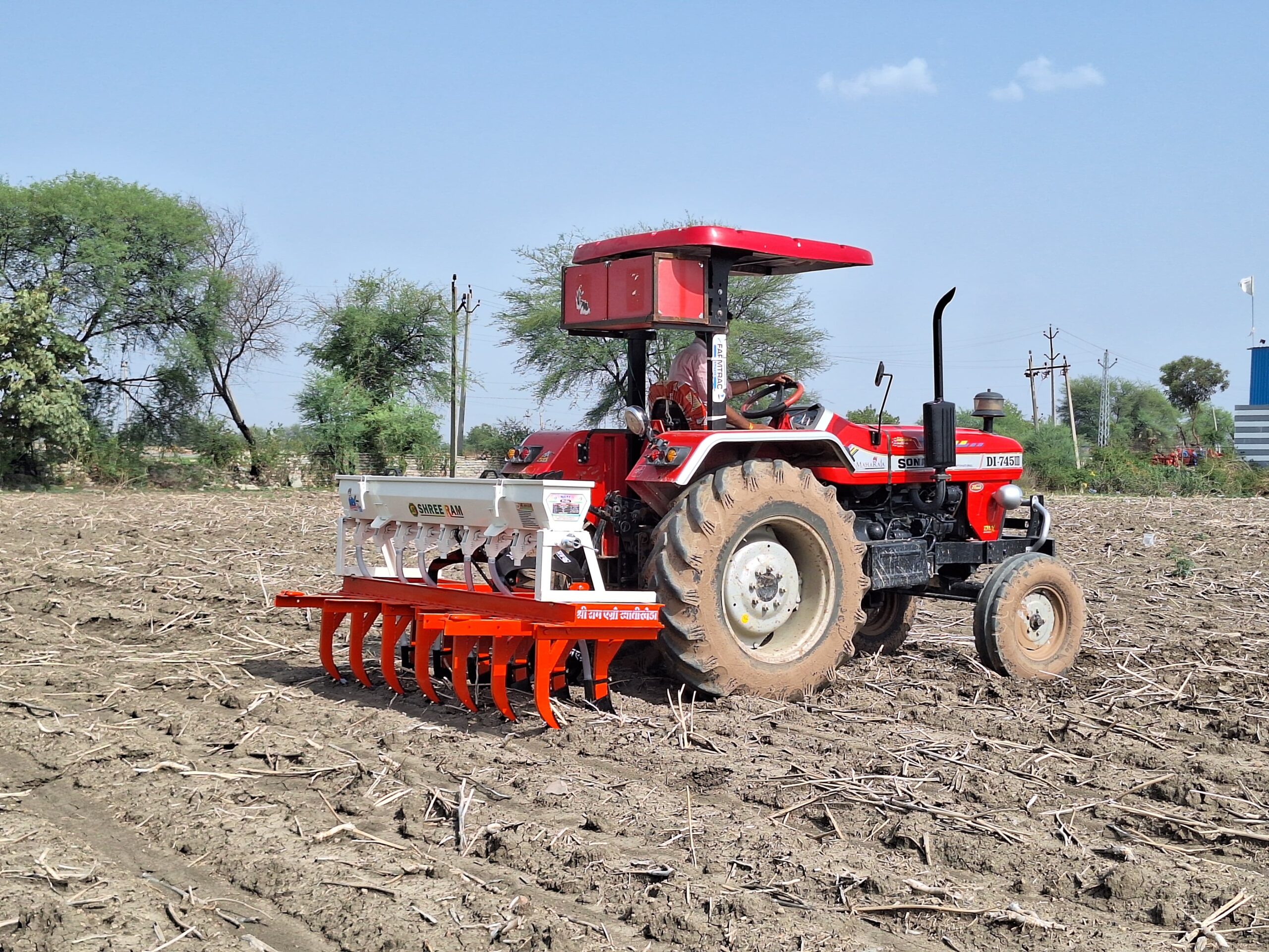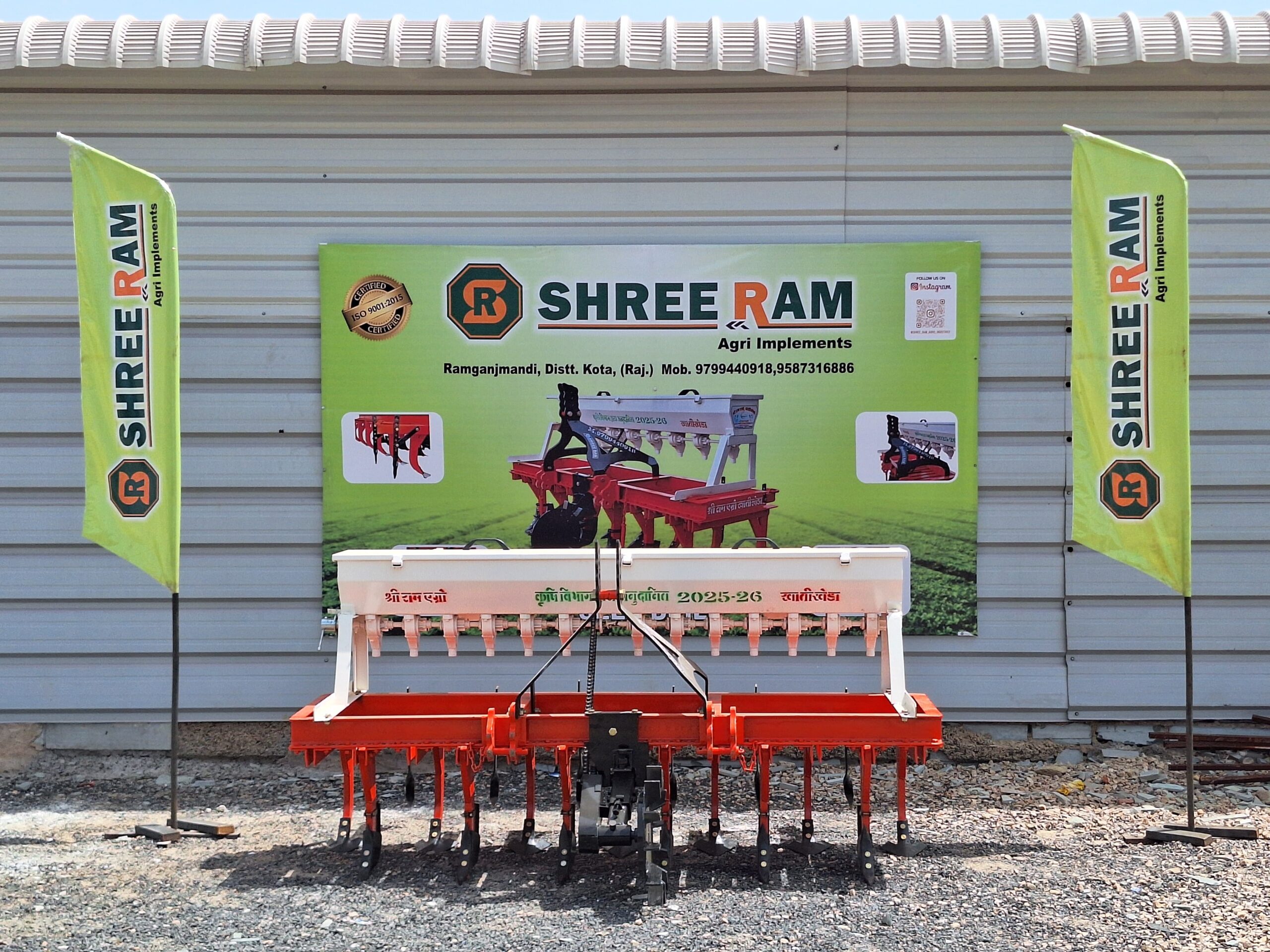 A Seed Drill is an important farm implement used for sowing seeds in rows at the correct depth and distance. It ensures uniform seed placement, which helps in proper germination and healthy crop growth. By covering the seeds with soil after sowing, it protects them from birds, wind, and moisture loss.